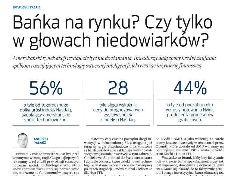 Zapraszamy do dziennika Parkiet do artykułu pt. „Bańka w USA – poważne ostrzeżenie czy ślepe myślenie życzeniowe?” i komentarza Michała Cichosza.