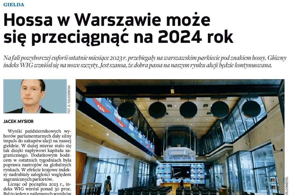 Zapraszamy do dziennika Parkiet do artykułu pt. „Hossa w Warszawie może się przeciągnąć na 2024 rok” i komentarzy Dariusza Świniarskiego zarządzającego z zespołu zarządzania portfelami.