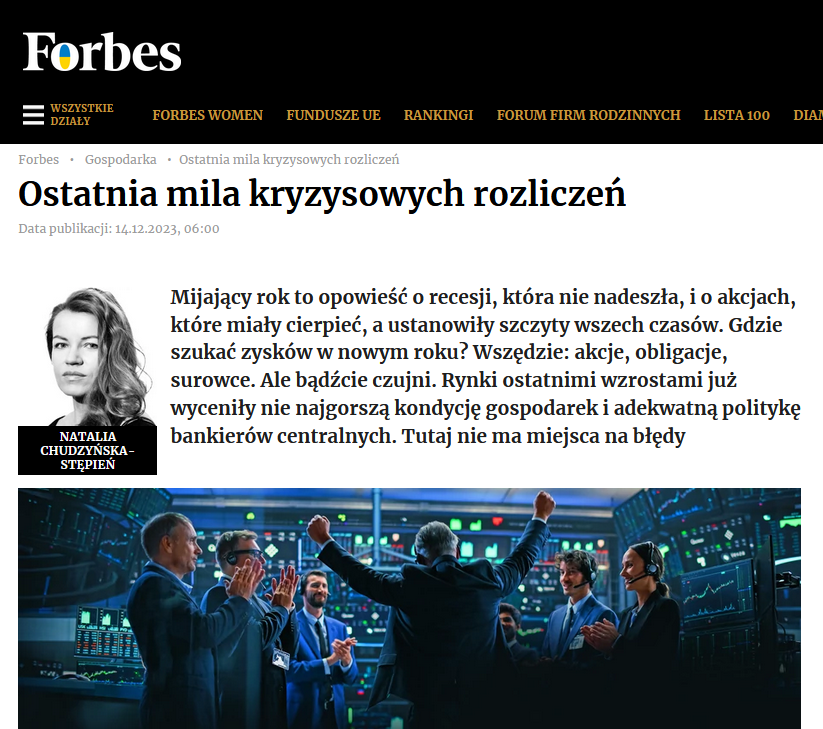 Zapraszamy do Forbes Polska do artykułu pt. „Ostatnia mila kryzysowych rozliczeń” i komentarzy Adama Czornieja ze Skarbiec TFI.