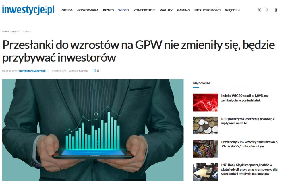 Zapraszamy do inwestycje.pl do artykułu pt. „Przesłanki do wzrostów na GPW nie zmieniły się, będzie przybywać inwestorów” i komentarzy Krzysztofa Cesarza.