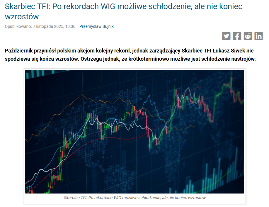 Artykuł pt. „Skarbiec TFI: Po rekordach WIG możliwe schłodzenie, ale nie koniec wzrostów”