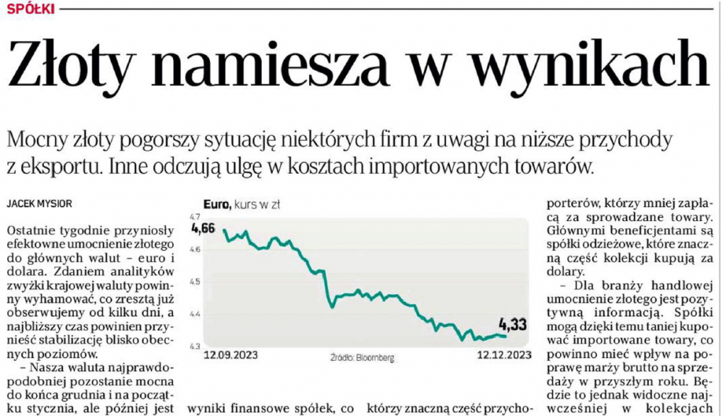 Artykuł pt. „Złoty namiesza w wynikach” i komentarze Dariusza Świniarskiego w dzienniku Rzeczpospolita