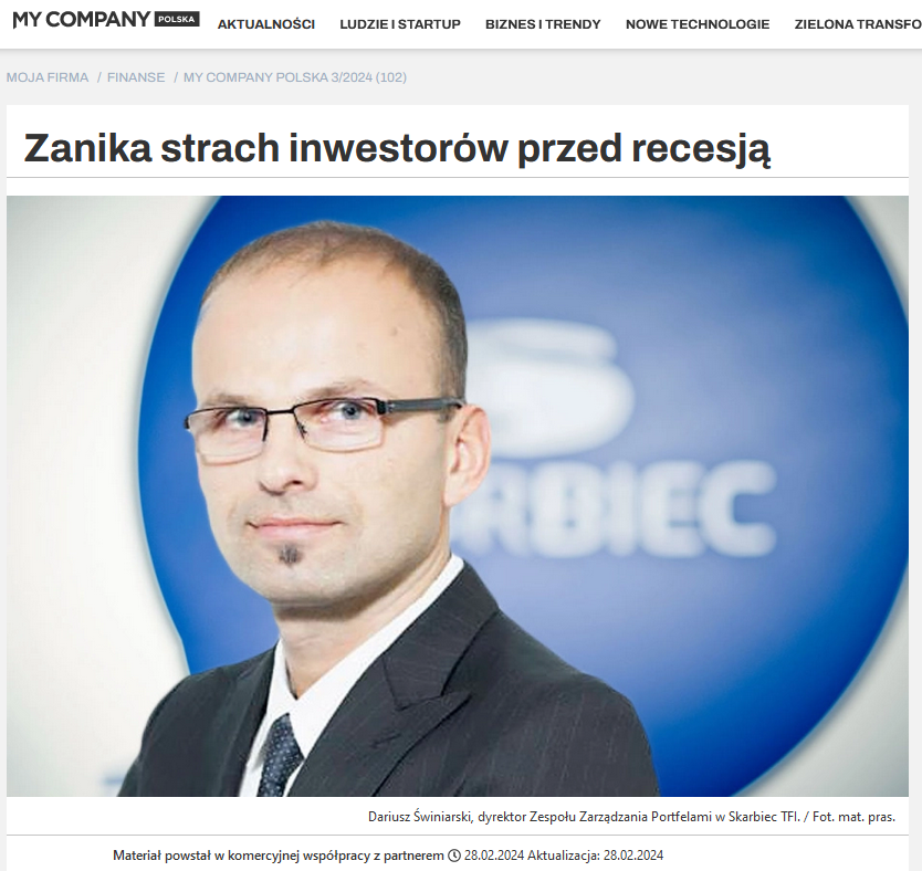Zapraszamy do My Company Polska do komentarza autorstwa Dariusza Świniarskiego pt. „Zanika strach inwestorów przed recesją”.