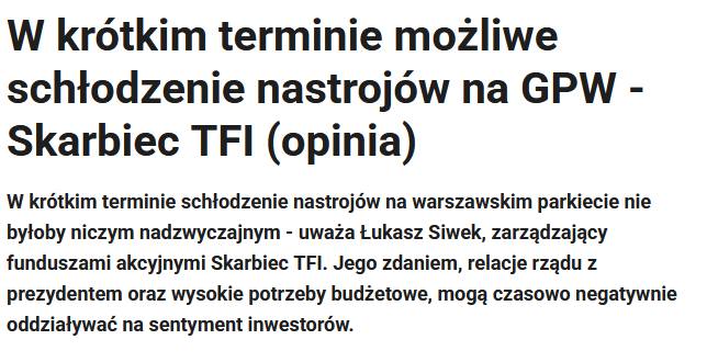 Opinia pt. „W krótkim terminie możliwe schłodzenie nastrojów na GPW”