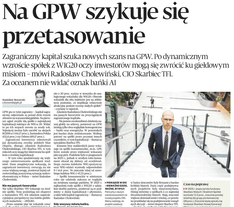 Dziś w Puls Biznesu możecie przeczytać rozmowę z Radoslaw Cholewinski, członkiem zarządku Skarbiec TFI