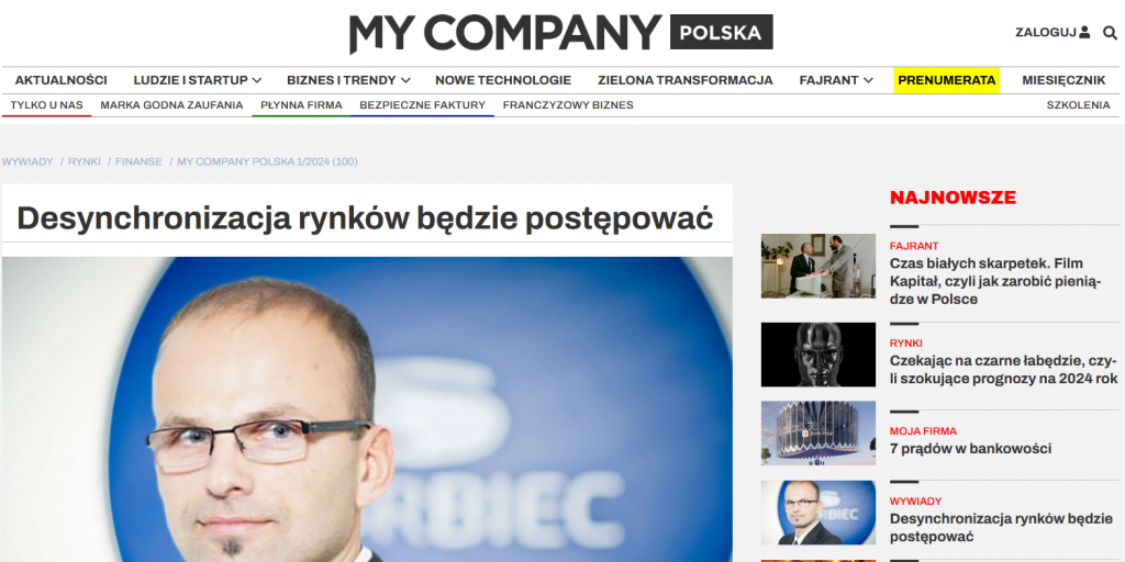 Rozmowa z Dariuszem Świniarskim pt. „Desynchronizacja rynków będzie postępować” w My Company Polska