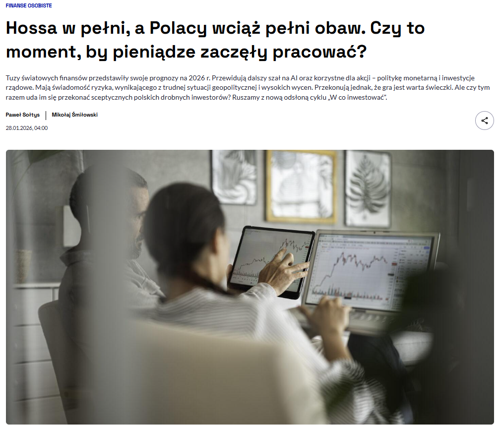 „Hossa w pełni, a Polacy wciąż pełni obaw. Czy to moment, by pieniądze zaczęły pracować?” – komentarz prezesa Skarbiec TFI